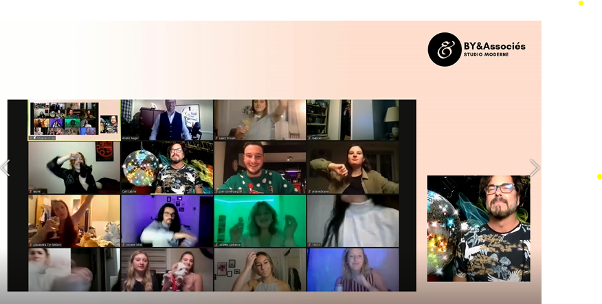 Août : Je lance le Dîner en Blanc virtuel. Avec la régie vidéo de SBI, mon partenaire Dany Boulette et moi, réussissons à aller chercher plus de 800 personnes à travers le monde. Dès cette soirée, je comprends la façon de créer des interactions, de faire vivre des émotions à distance et j’y vois les possibilités pour faire des congrès et des party des fêtes qui seront extrêmement dynamiques. Quelque chose est lancée…